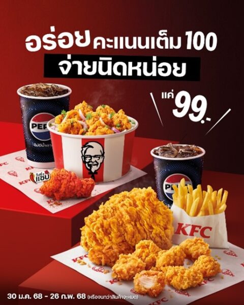 ให้ทุกมื้อของคุณไม่ต้องนอยด์…ราคาไม่ถึงร้อย แต่คุ้มอร่อย ร้อยเต็ม! รีบจัด KFC “อิ่มคุ้ม 99” กันได้ถึง 26 กุมภาพันธ์ 2568 นี้เท่านั้น!
